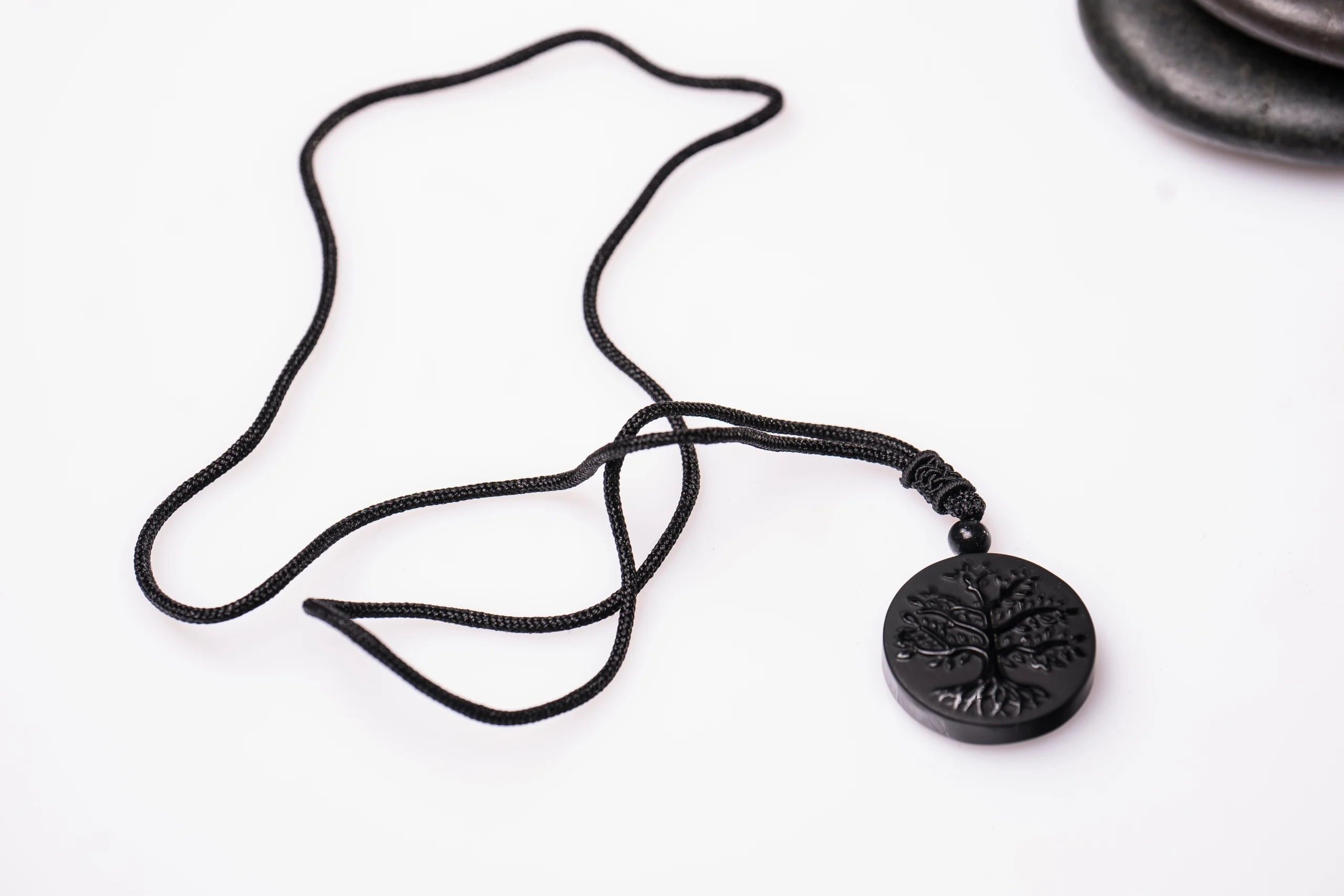 Simbol rasti in moči. Obesek (⌀ 3 cm) iz črnega obsidiana podpira energijsko zaščito in notranjo trdnost. Dolžina verižice: 64 cm. Preprosta eleganca s pomenom.