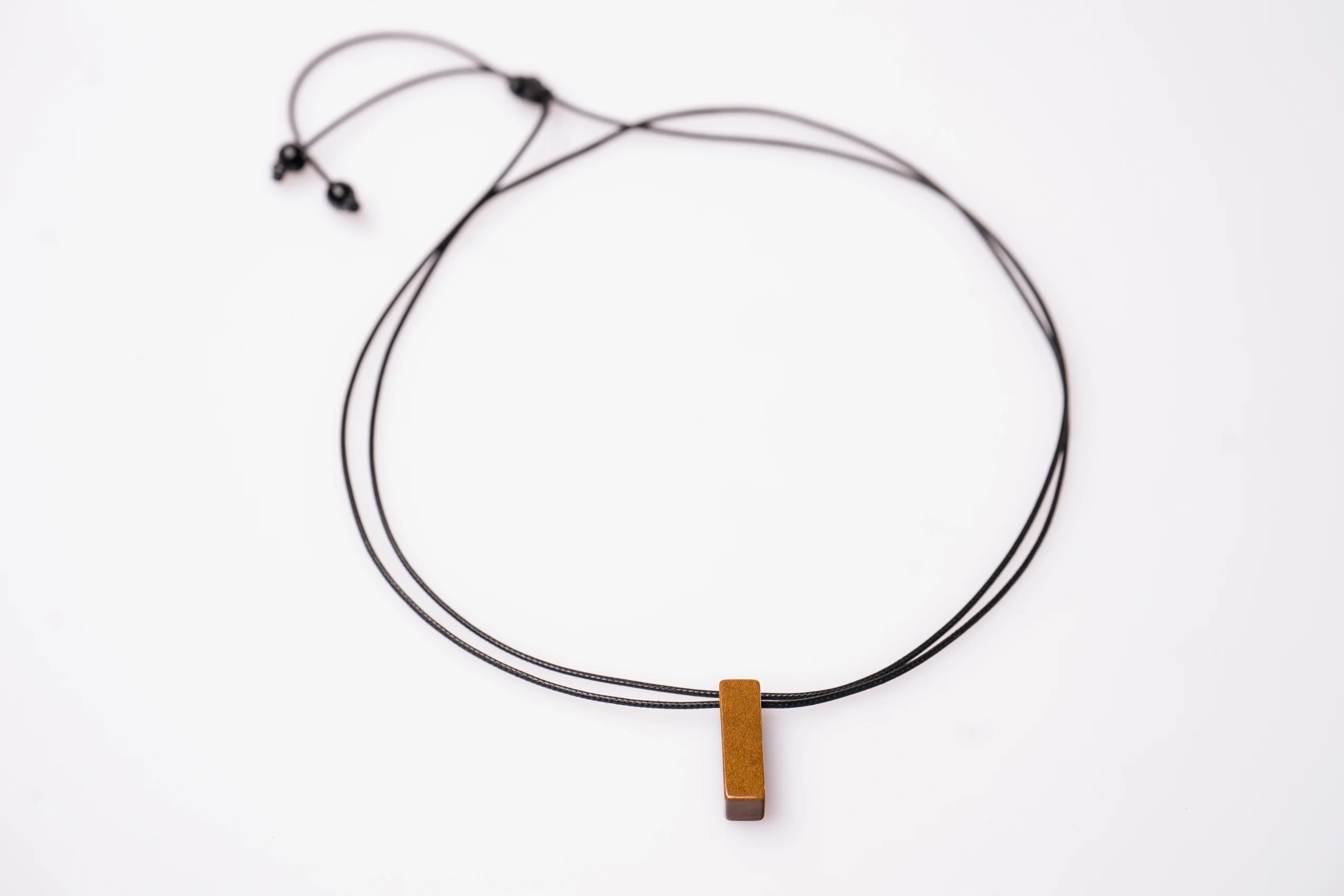 Minimalistična in močna. Obesek iz naravnega tigrovega očesa, ki simbolizira notranjo moč in zaščito. Nastavljiva usnjena vrvica (45–65 cm) omogoča prilagajanje za popolno udobje. Velikost obeska: 1 × 2,5 cm.